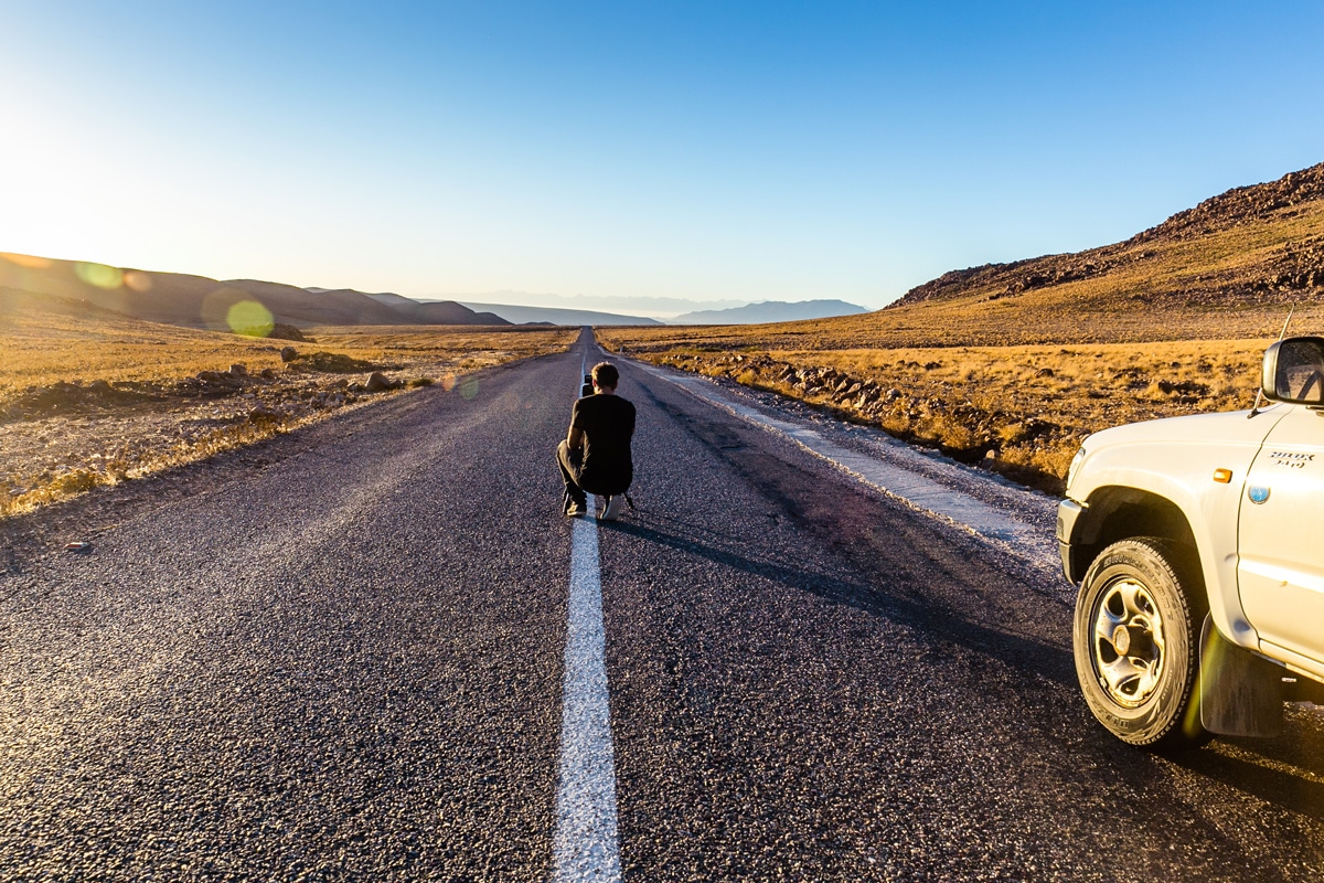 Was soll’s, wir vertrauen unserem Entdeckergeist und unserer Neugier, Blinker nach Links und ab nach Osten: Ein illustrer Tross – gleich einer Händlerkarawane auf Kamelen (nur dass wir statt mit Myrrhe und Salbei mit Kameraequipment und Surfboards beladen sind und auf zwei Pickups reiten) rollen wir in Richtung Sahara zu den Nomaden der Wüste...